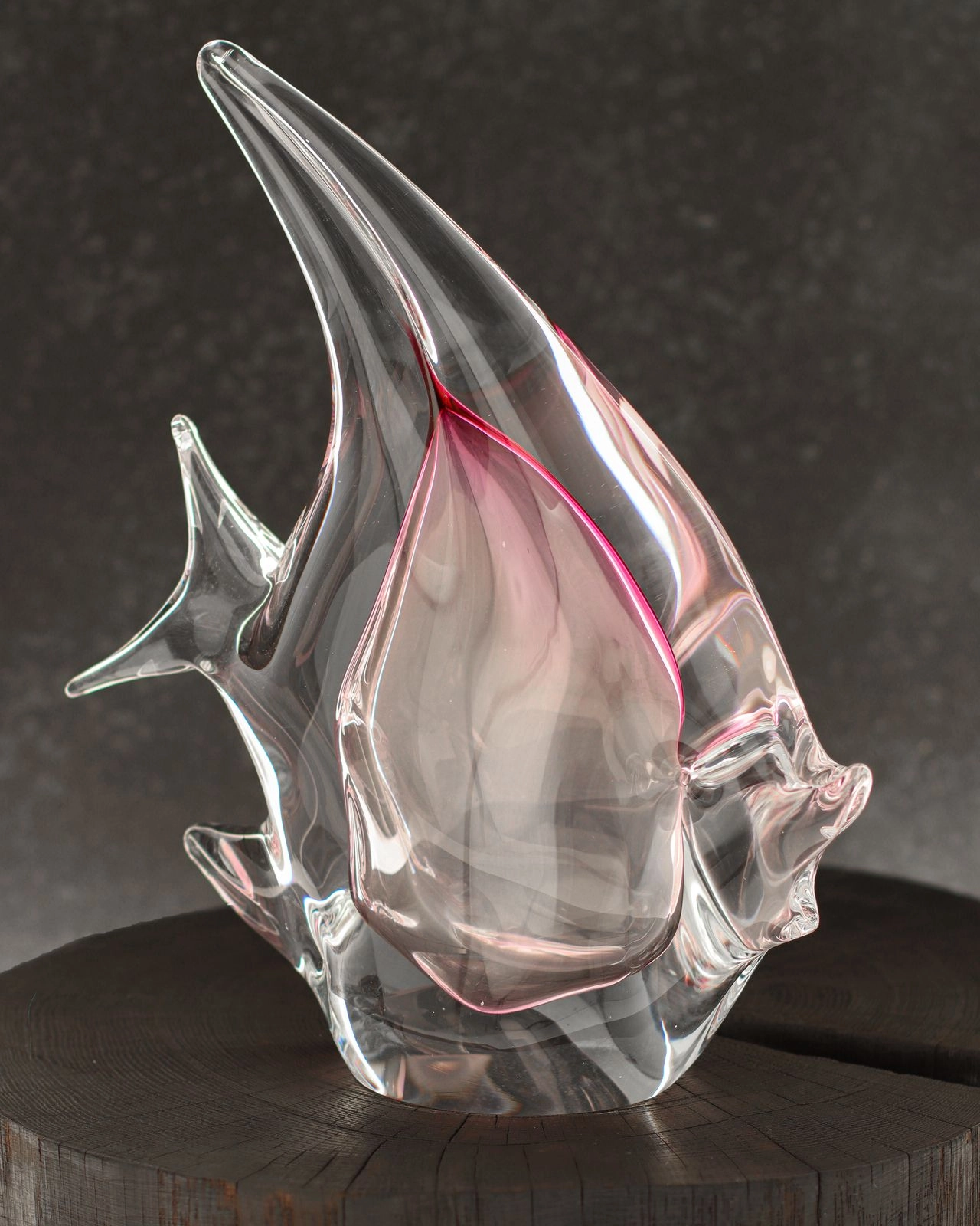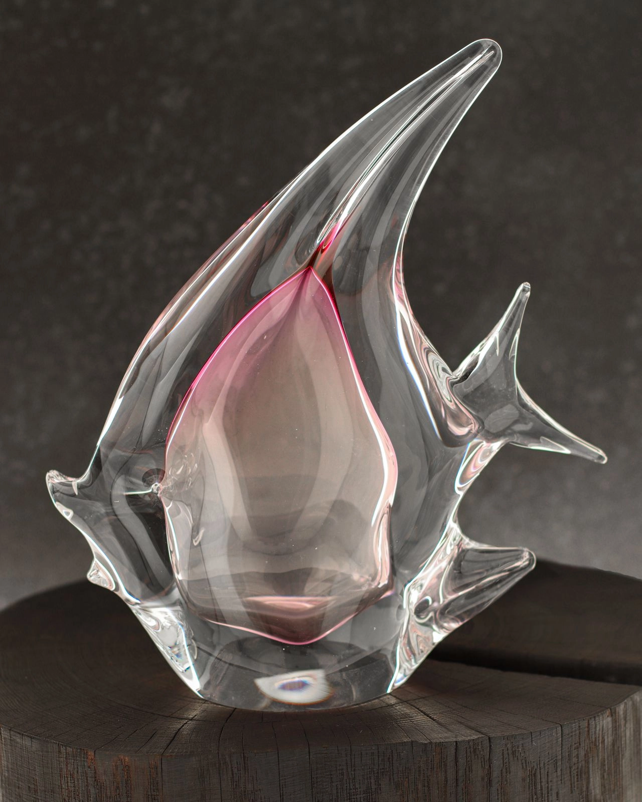 Szklana ryba rzeźba figurka SKALAR 26cm - kolor bezbarwny + różowy | HUTA SABINA