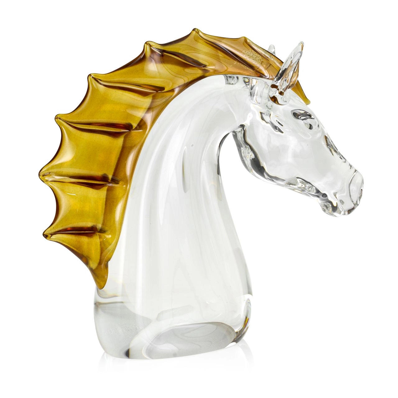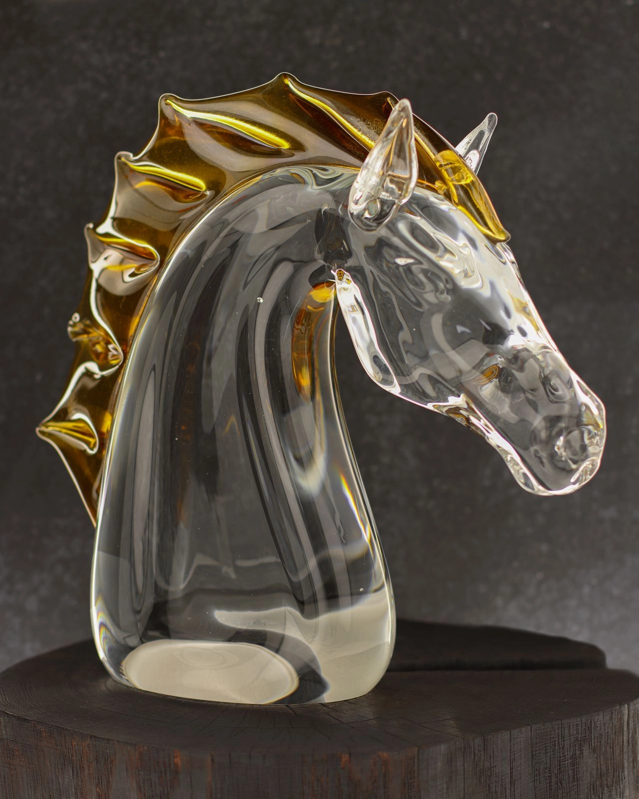 Szklana rzeźba Głowa konia bezbarwna + grzywa w kolorze | HUTA SABINA