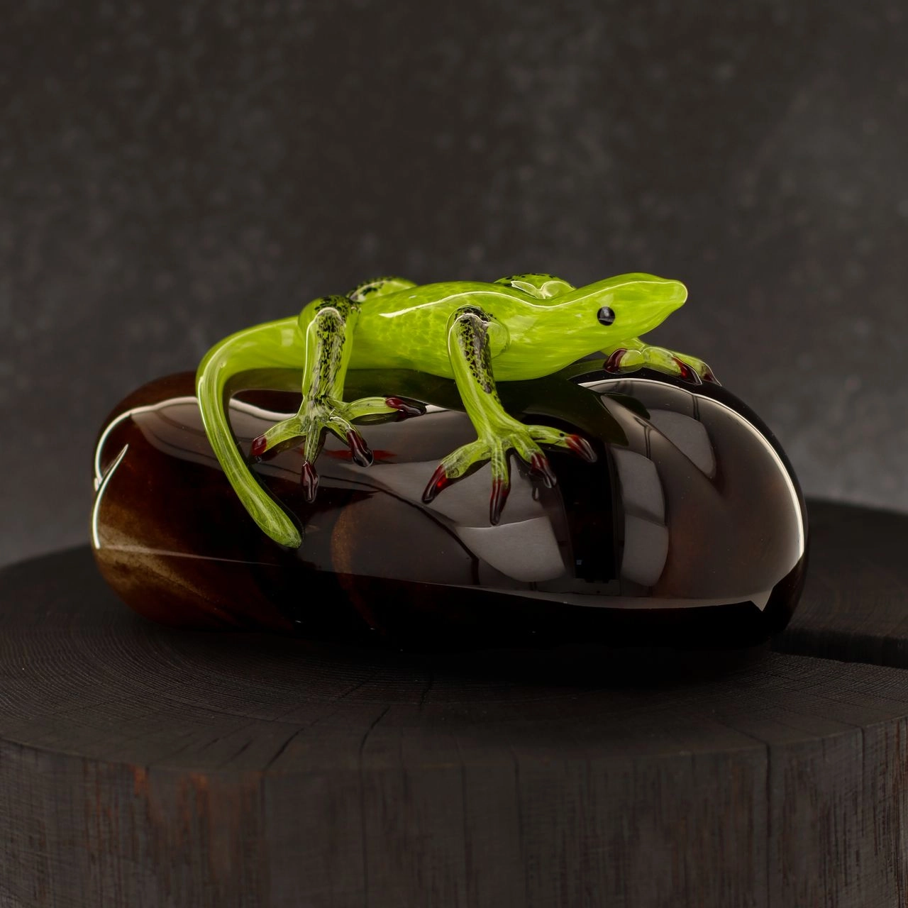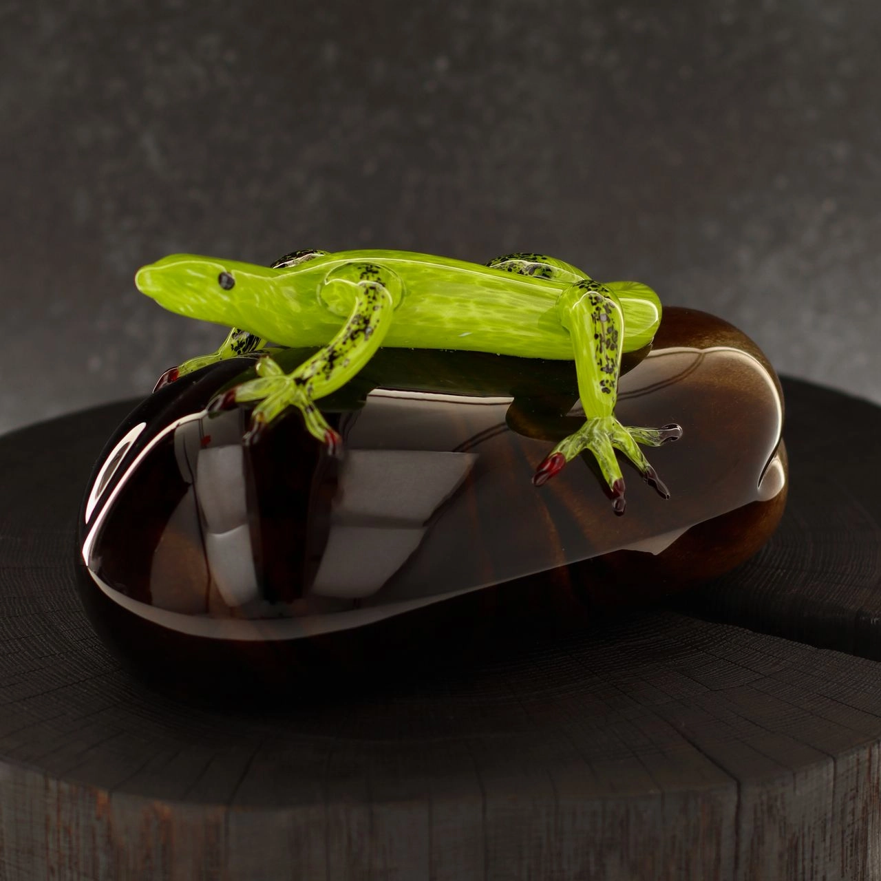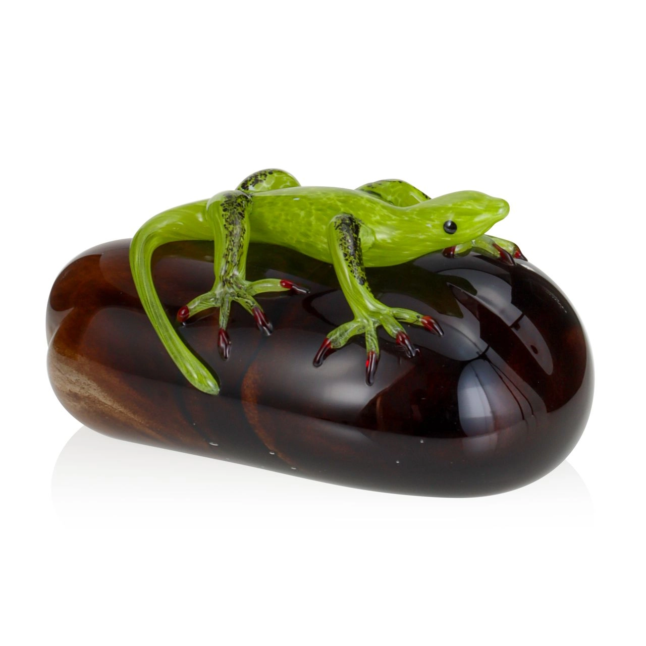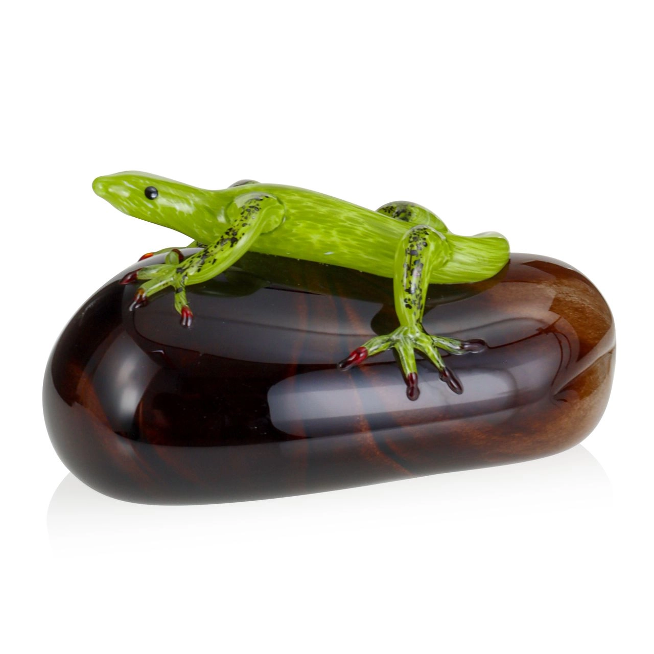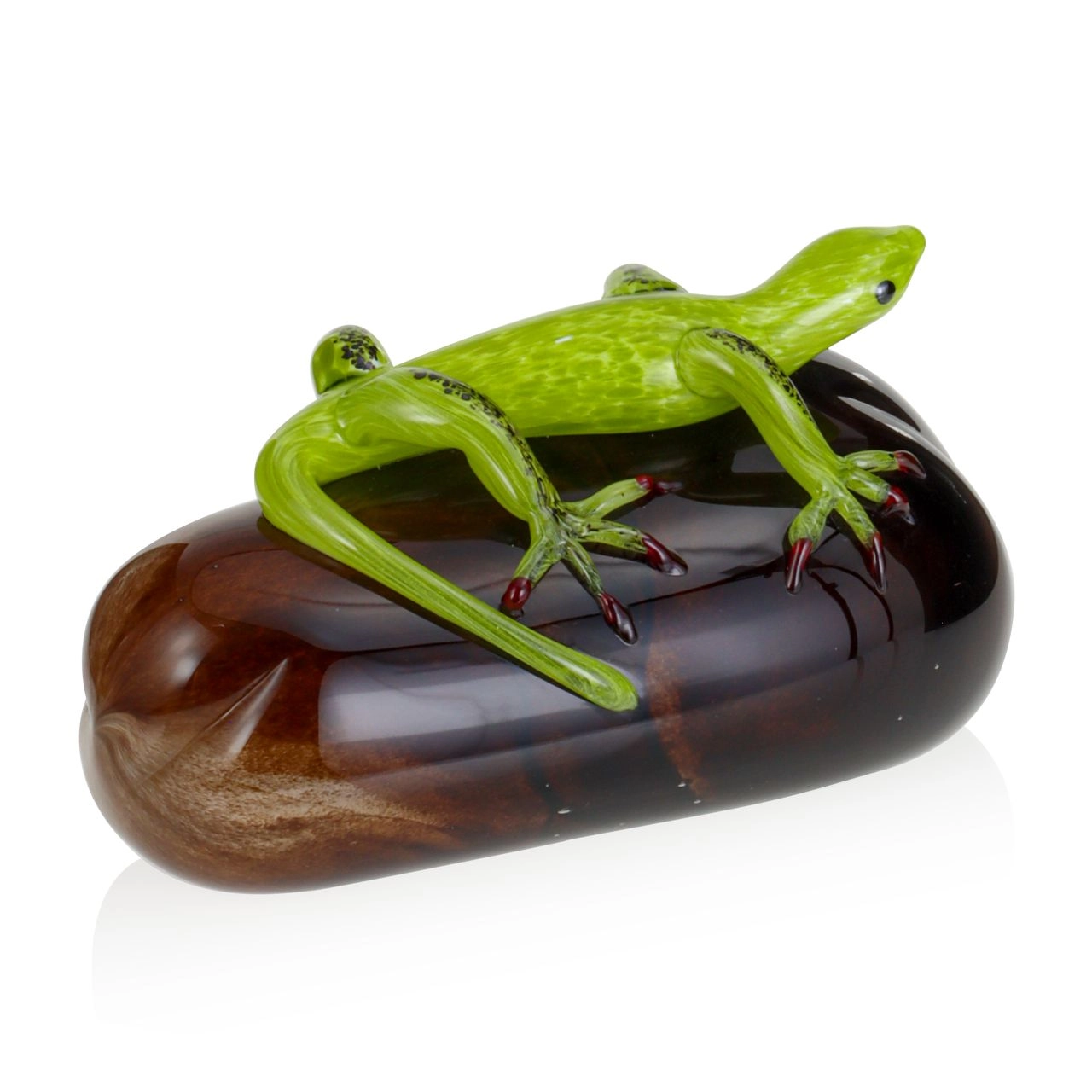 Szklana rzeźba Jaszczurka na kamieniu - Kolorowa | HUTA SABINA
