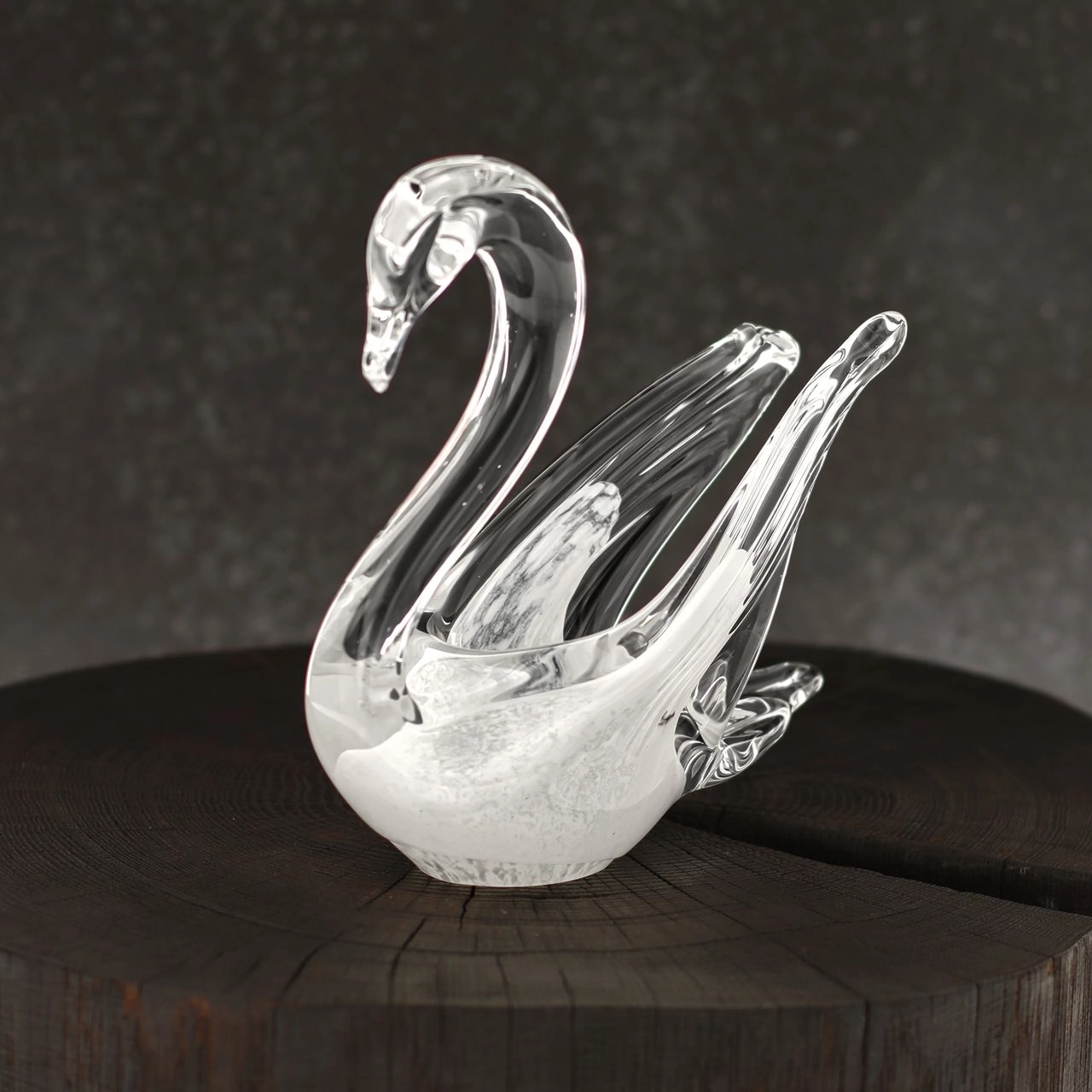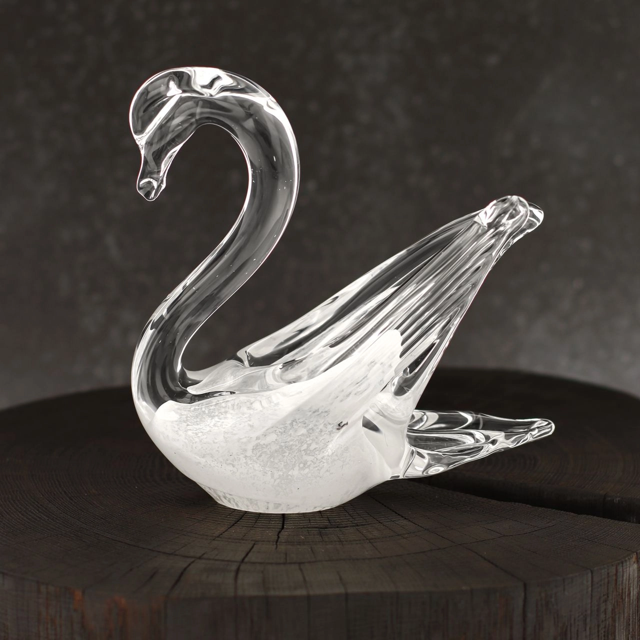 Szklana rzeźba Łabędź ~15cm - Kolor Biały | HUTA SABINA