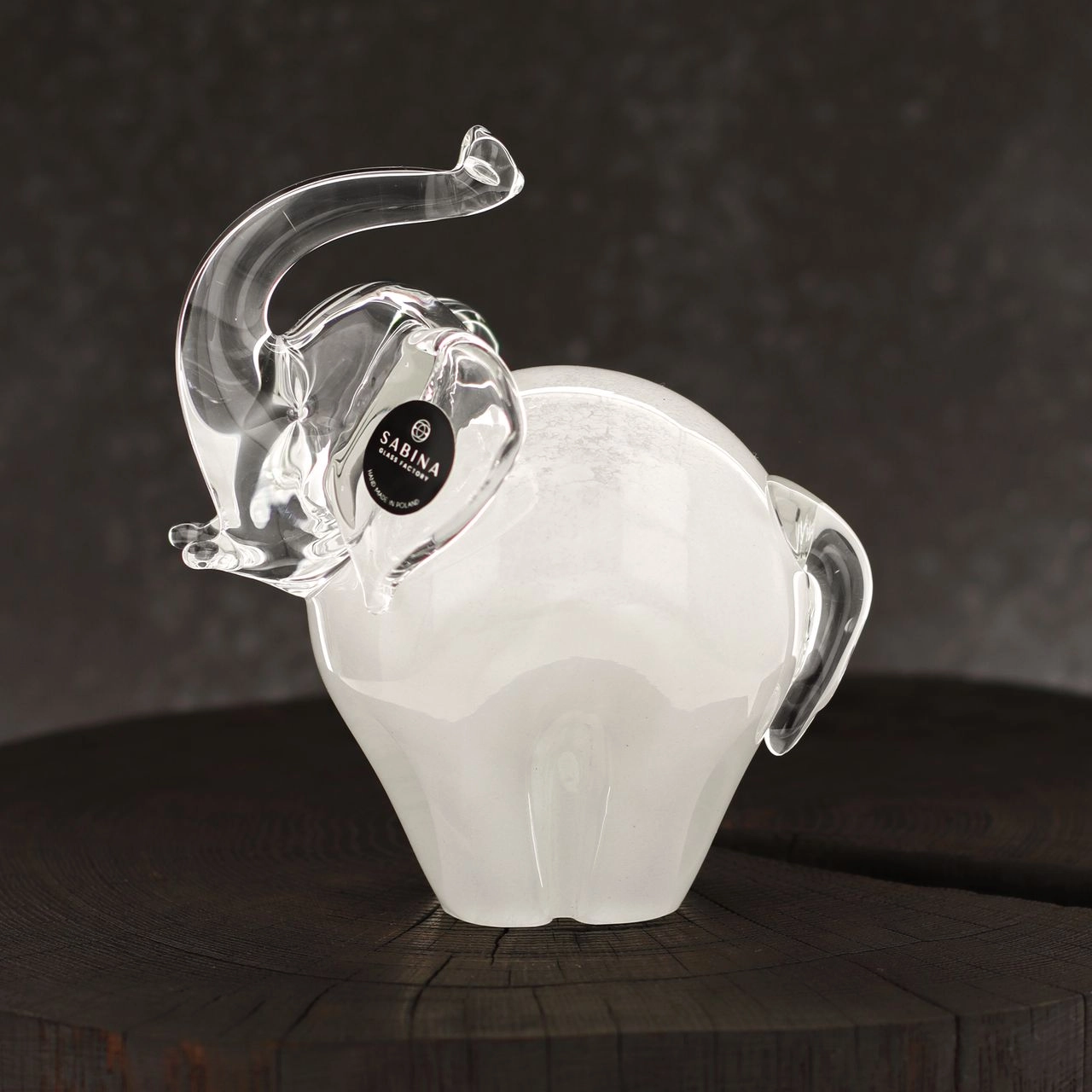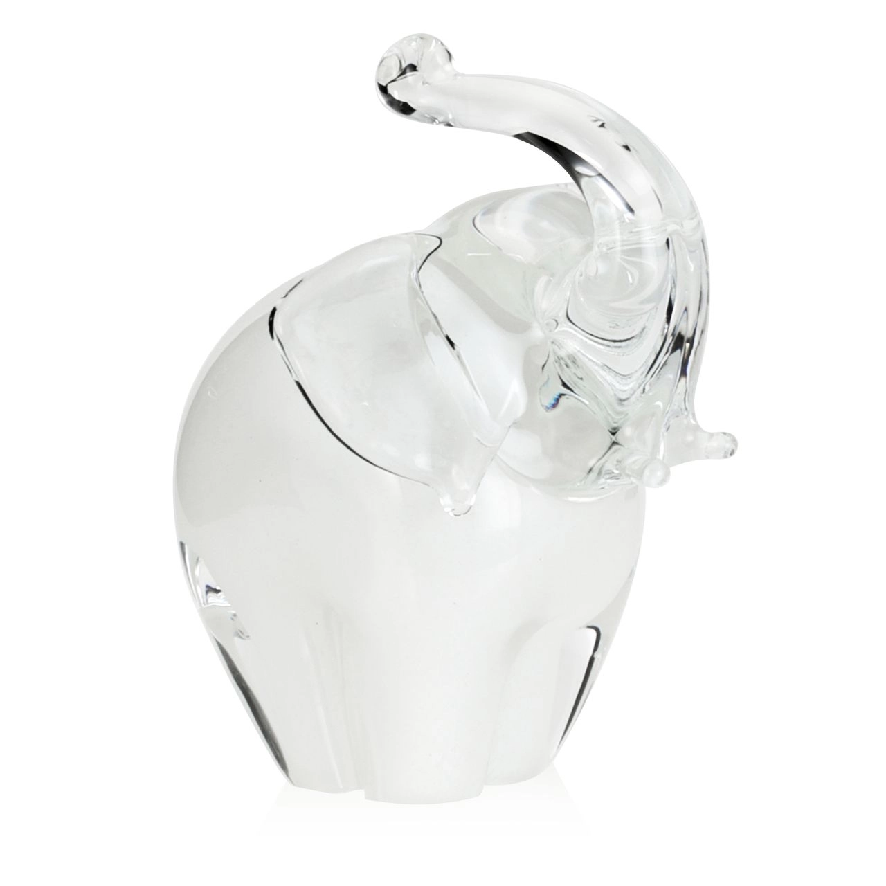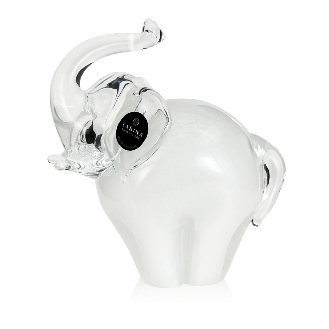 Szklana rzeźba Słoń z uniesioną trąbą ~14cm - Kolor Biały | HUTA SABINA