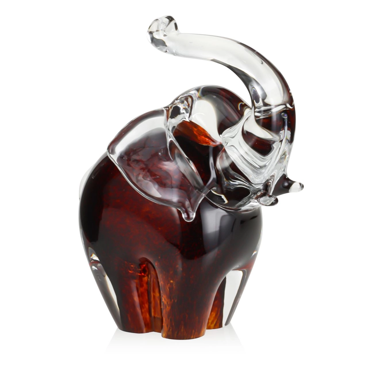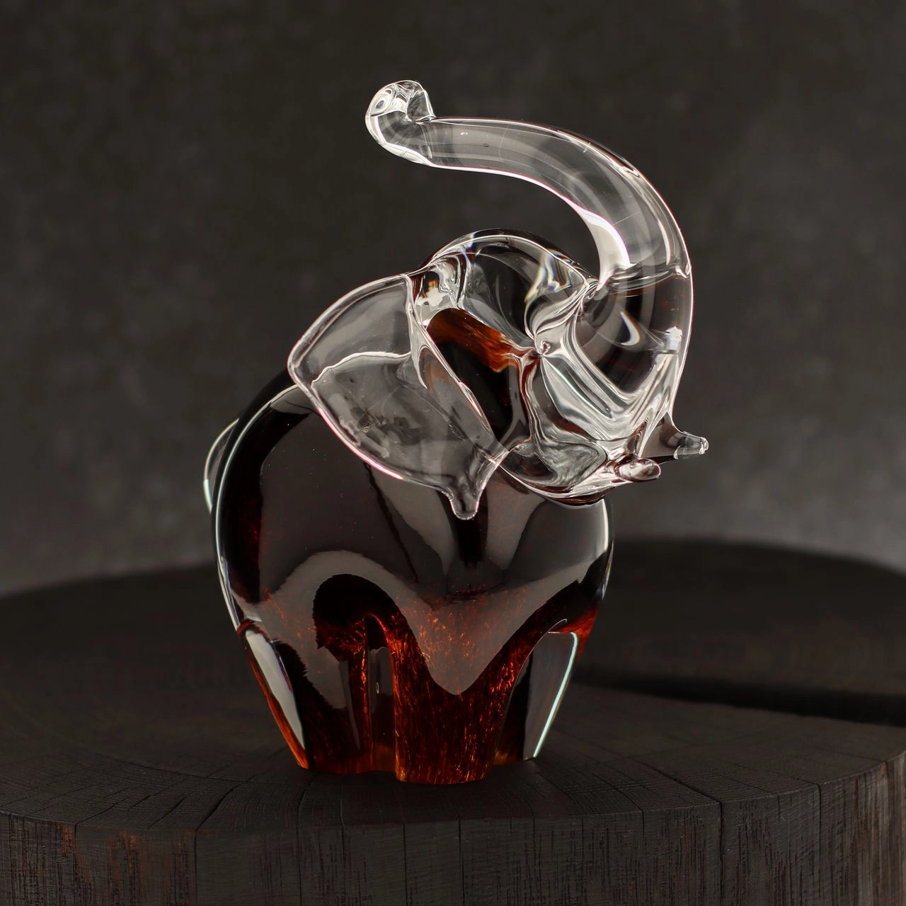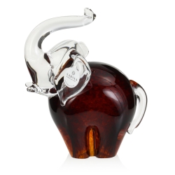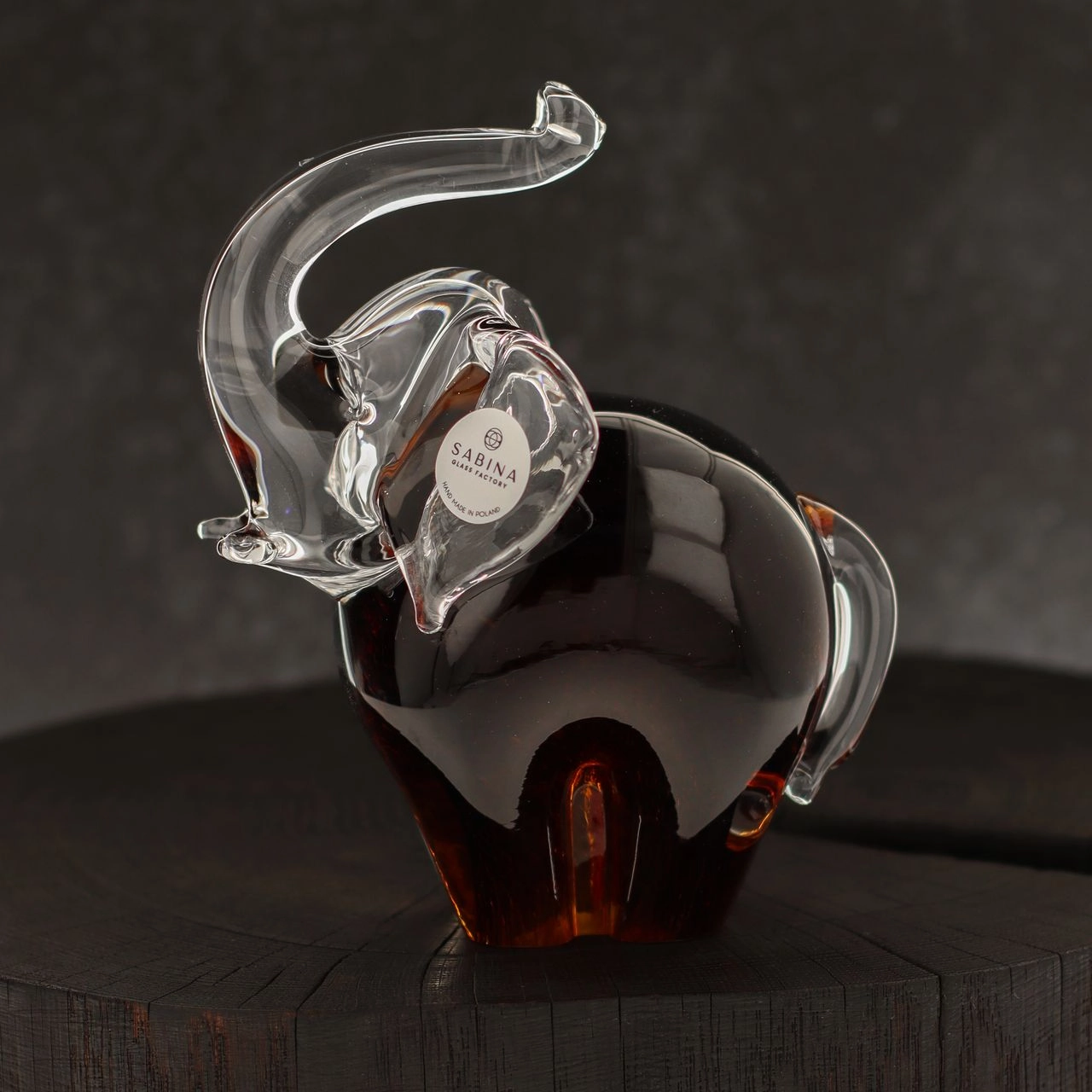 Szklana rzeźba Słoń z uniesioną trąbą ~14cm - Kolor Brązowy | HUTA SABINA