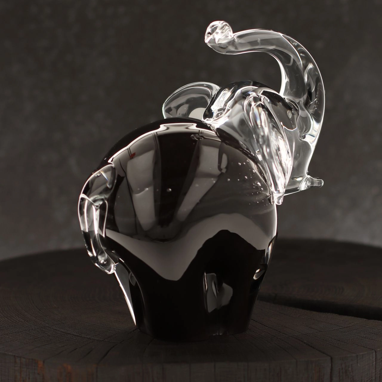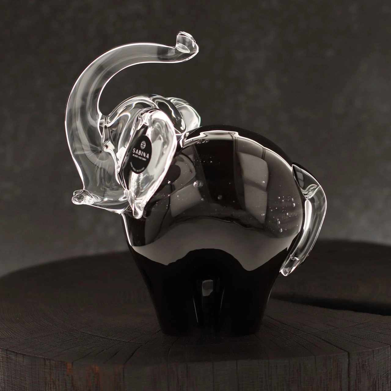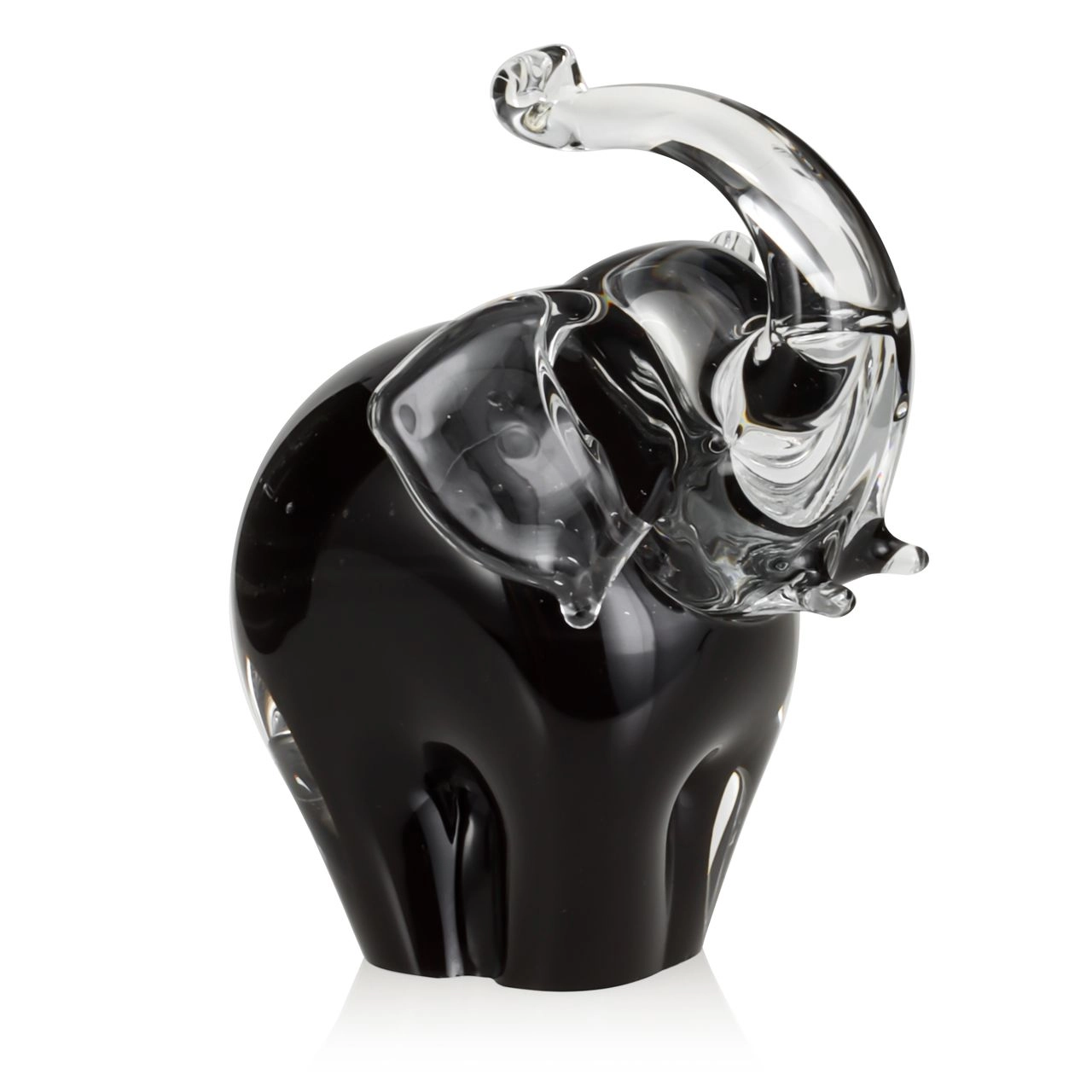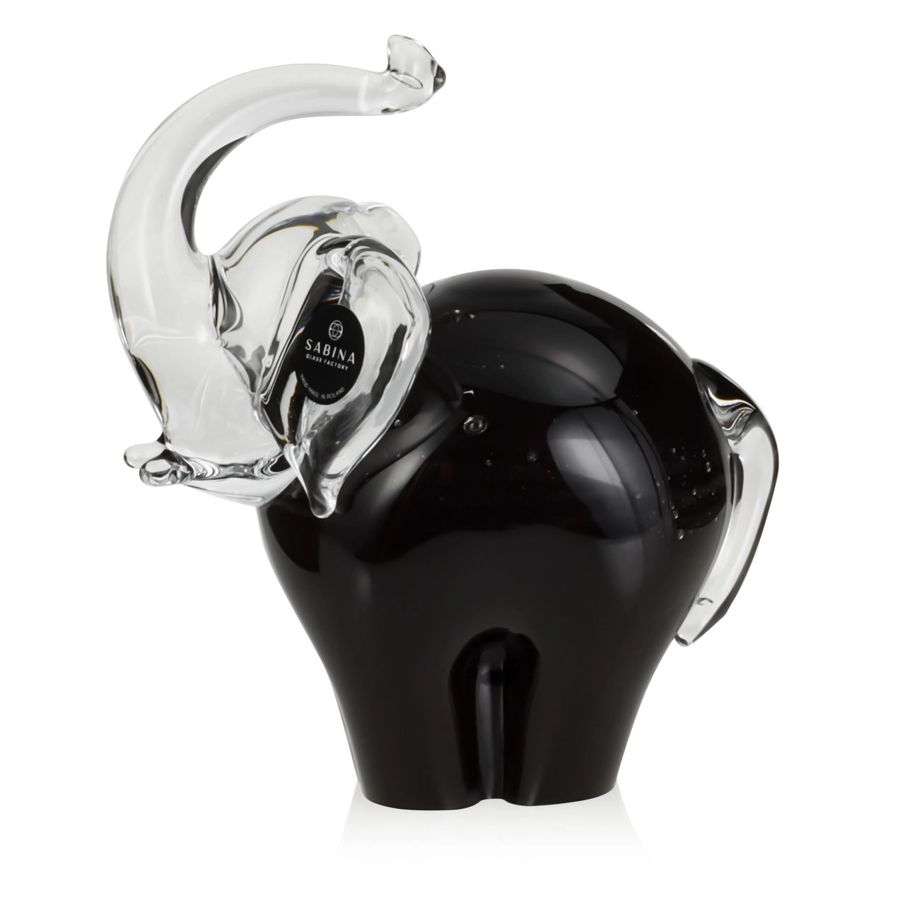Szklana rzeźba Słoń z uniesioną trąbą ~15cm - Kolor Czarny + Soda | HUTA SABINA
