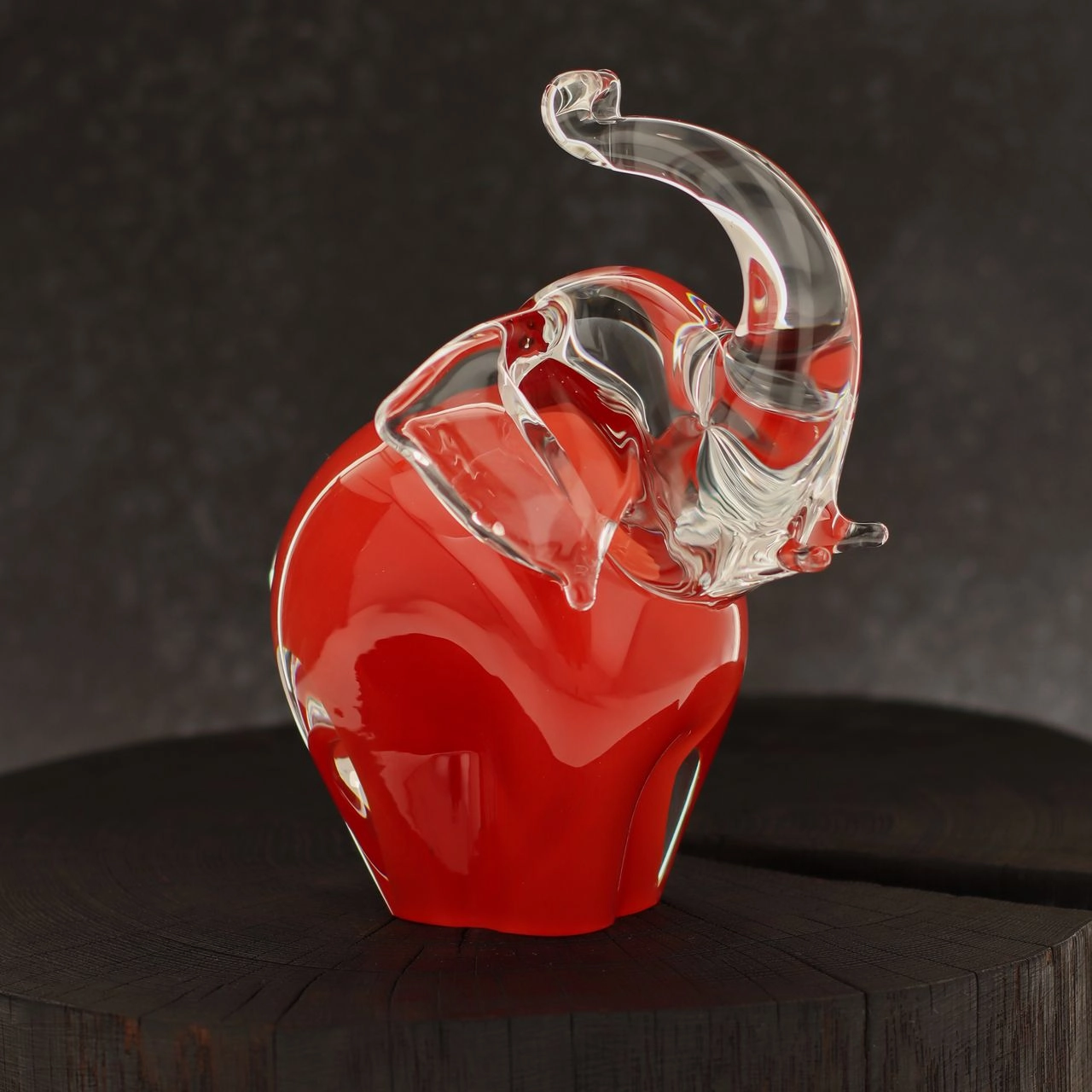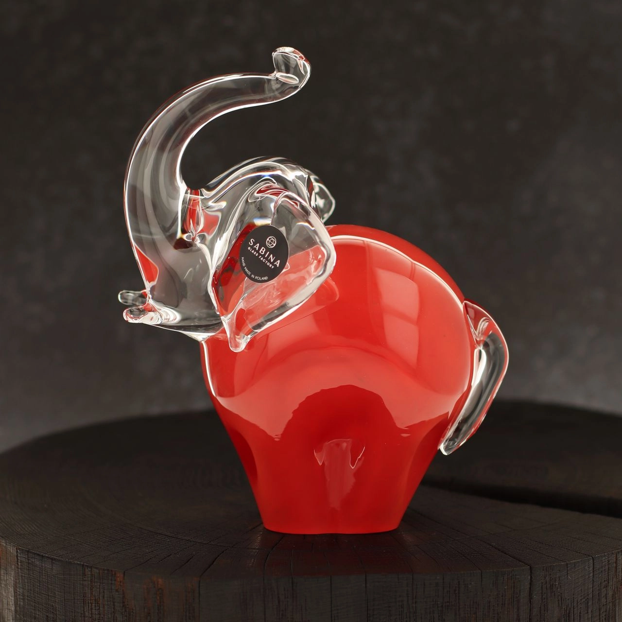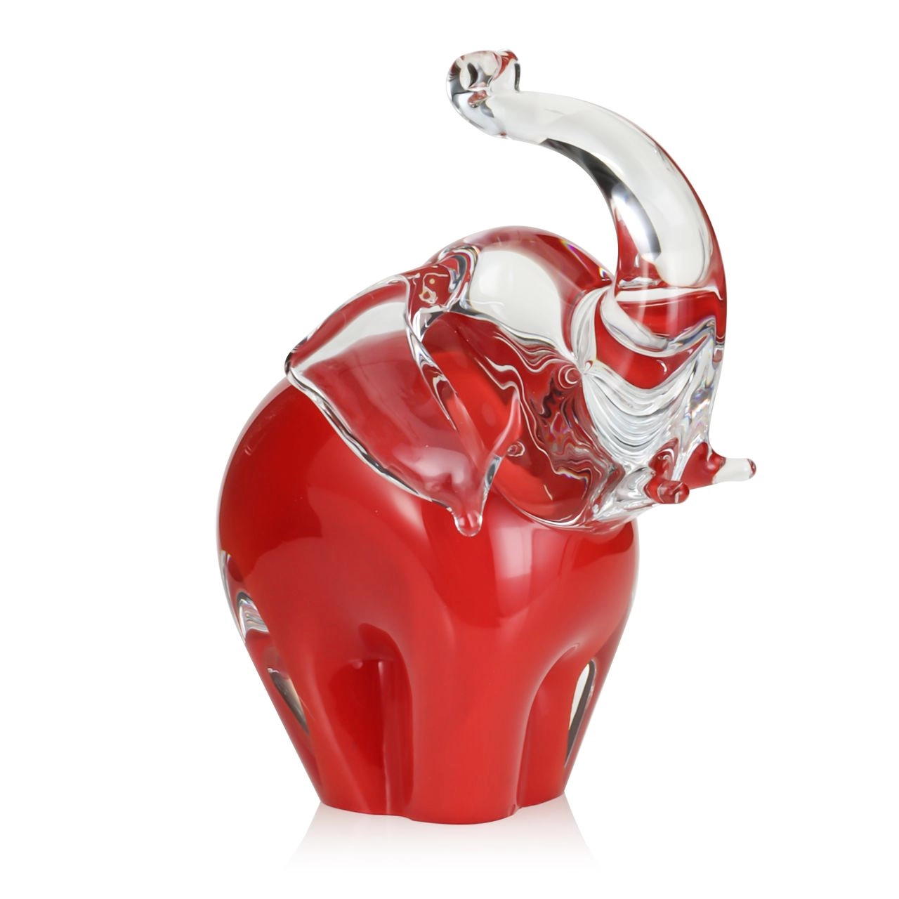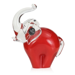 Szklana rzeźba Słoń z uniesioną trąbą ~15cm - Kolor Czerwony | HUTA SABINA