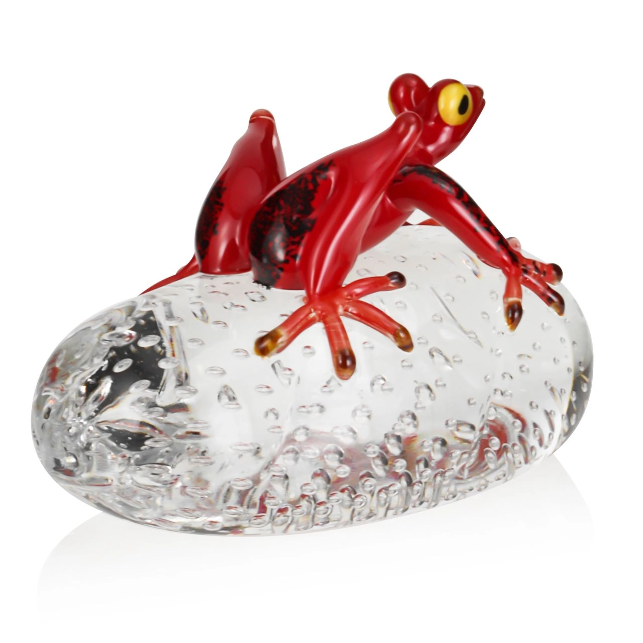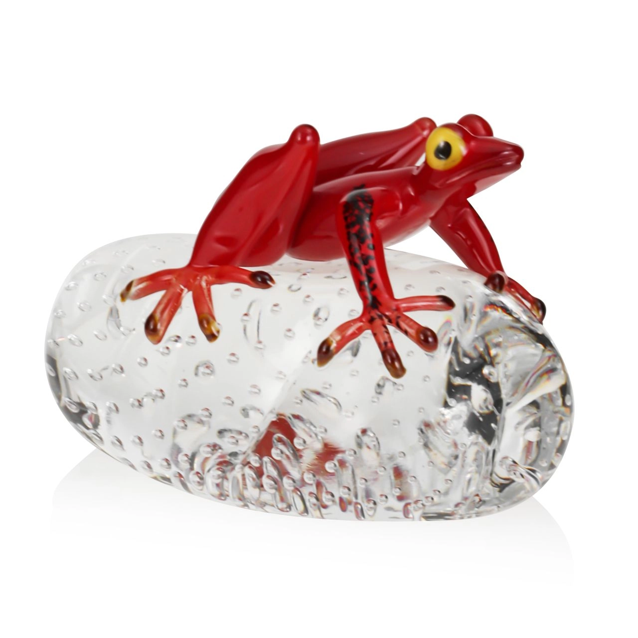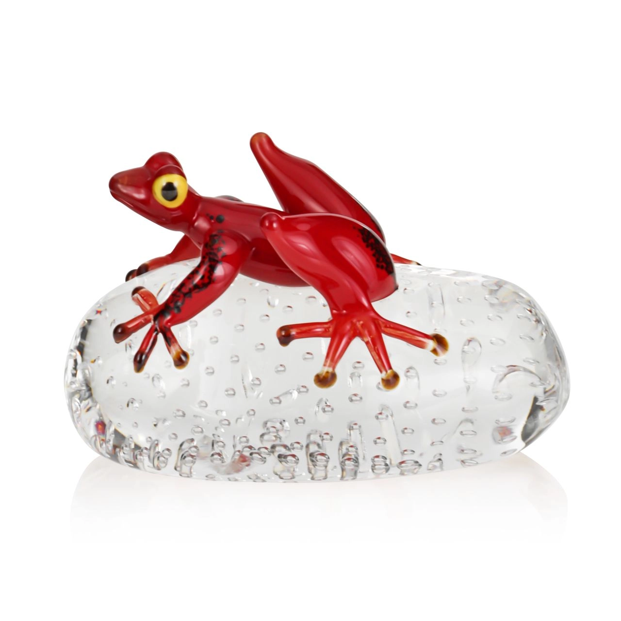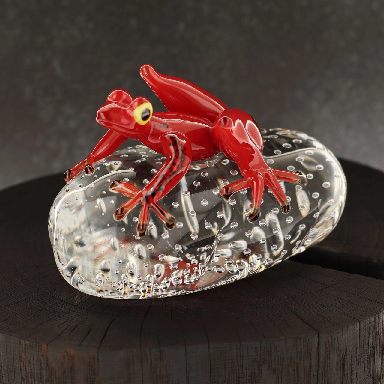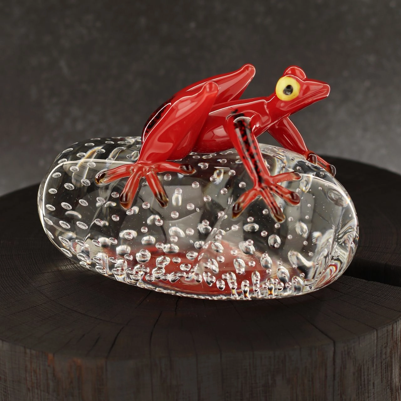 Szklana rzeźba Żaba na kuli - Kolor + Pladry | HUTA SABINA