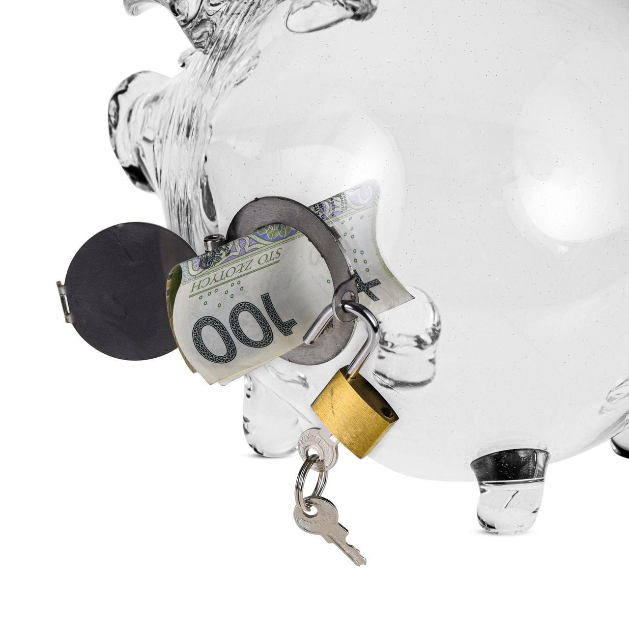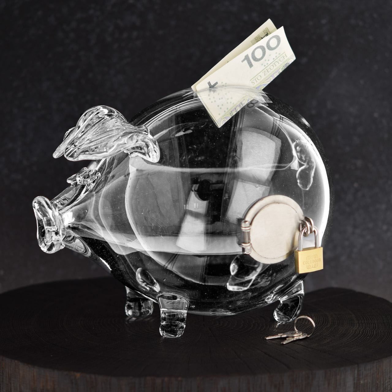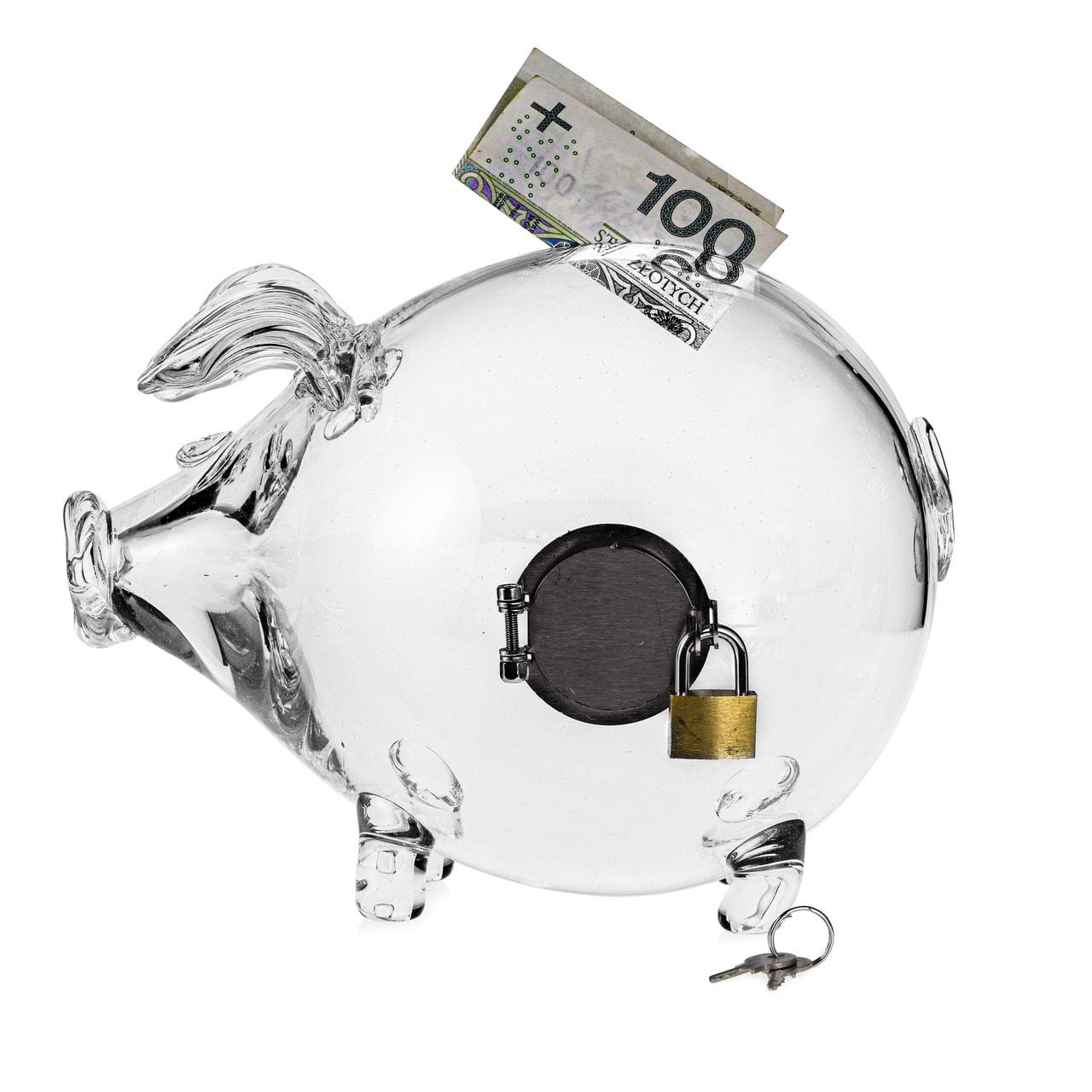 Szklana skarbonka ŚWINKA OTWIERANA Z KŁÓDKĄ do opróżniania