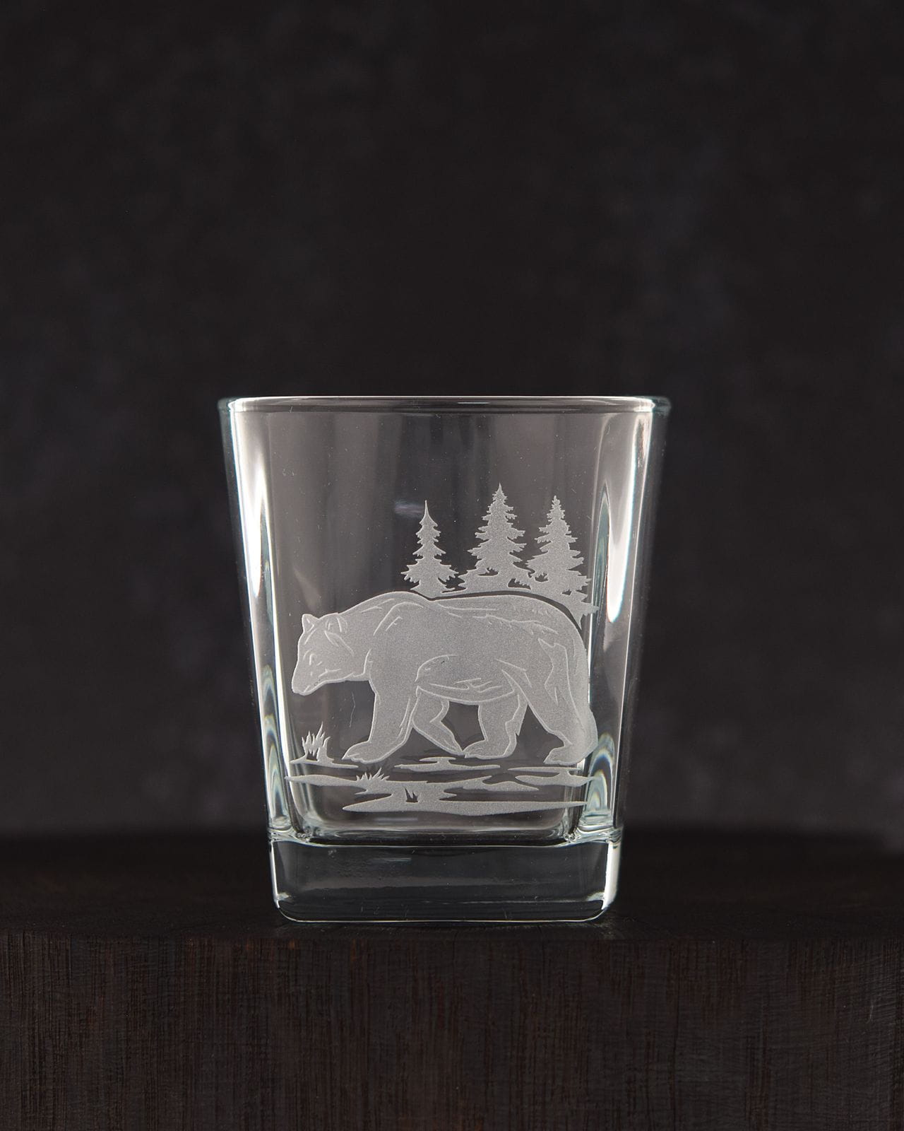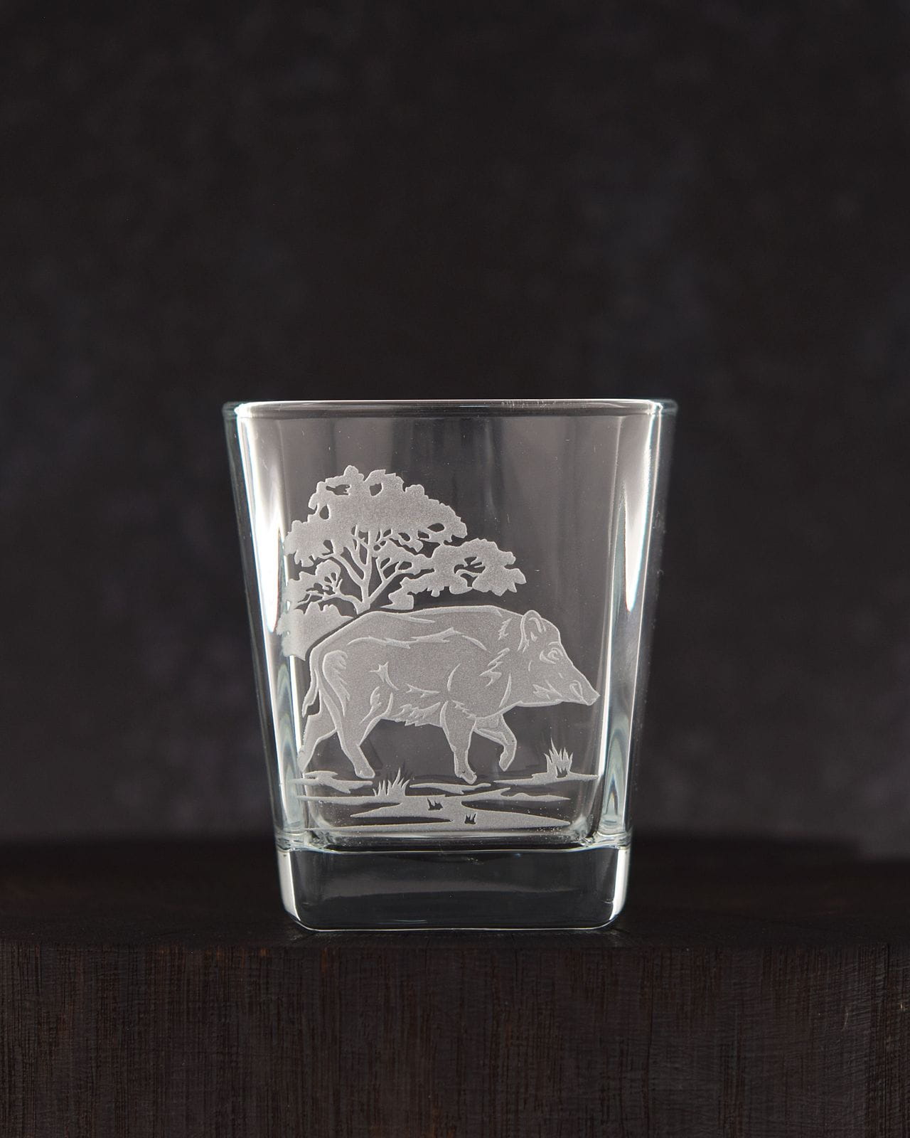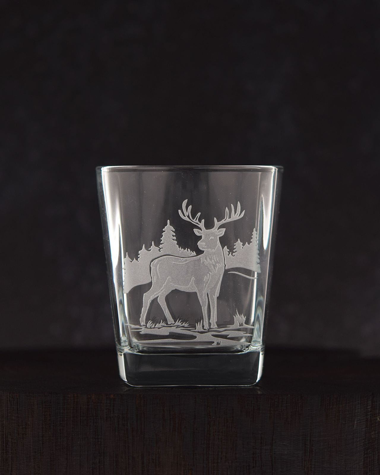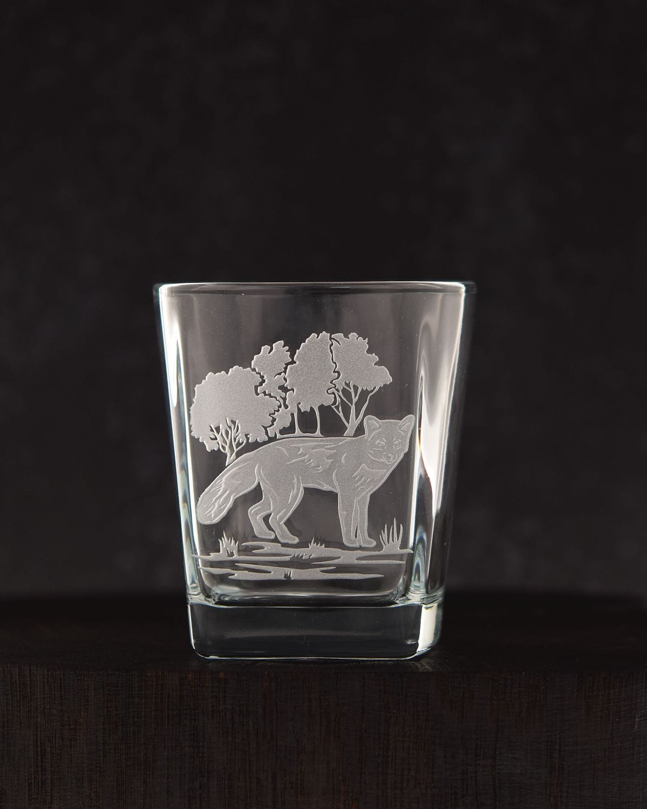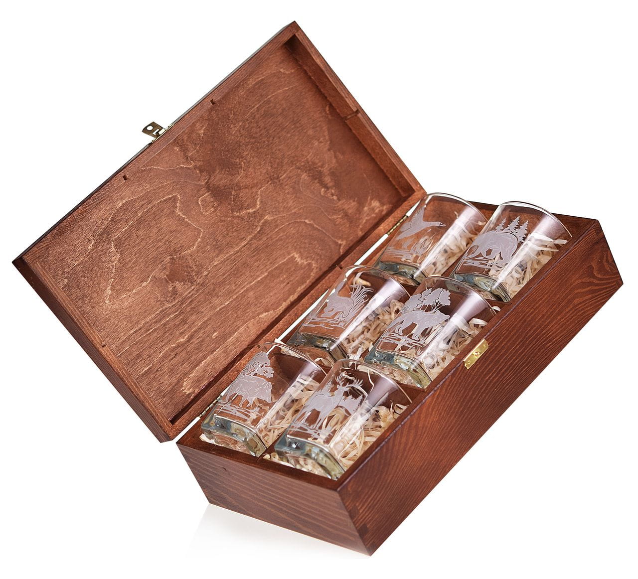 Zestaw do whisky Szkło-Krosno "Myśliwskie" - Kwadratowe szklanki Trend Glass 300ml zdobione motywami myśliwskimi w szykownej drewnianej skrzynce