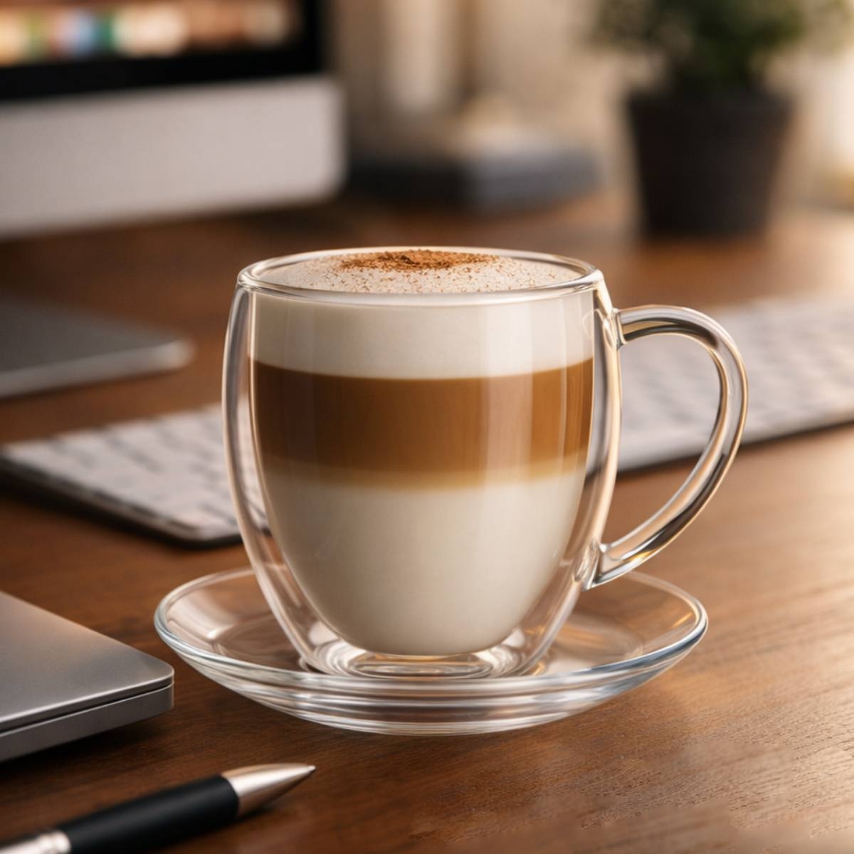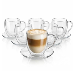 Zestaw 6 kubków / szklanek termicznych z uchem i podwójnym dnem o pojemności 250ml + 6 spodków