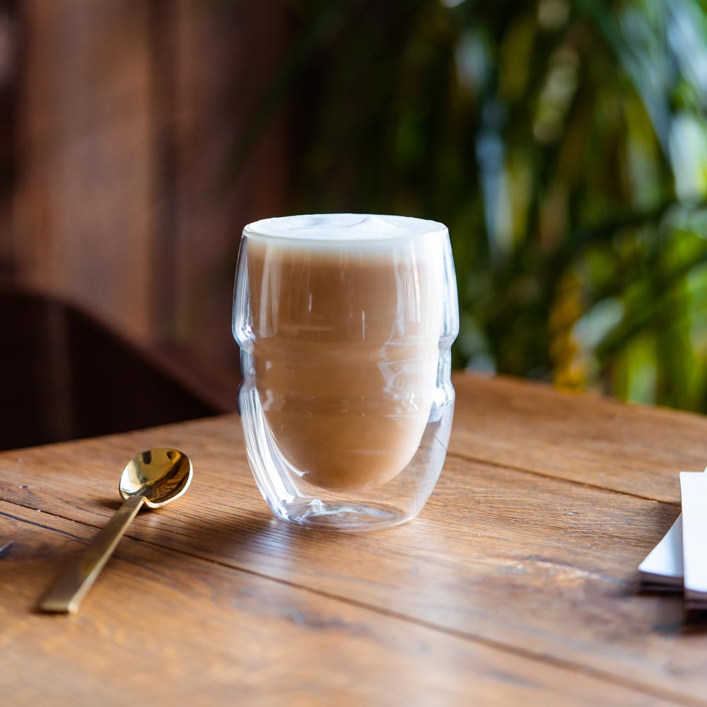 Szkło termiczne umożliwia utrzymanie wysokiej temperatury przez długi czas a dzięki podwójnej ściance zewnętrzna część szkła jest zawsze chłodna co zapobiega poparzeniu dłoni.
