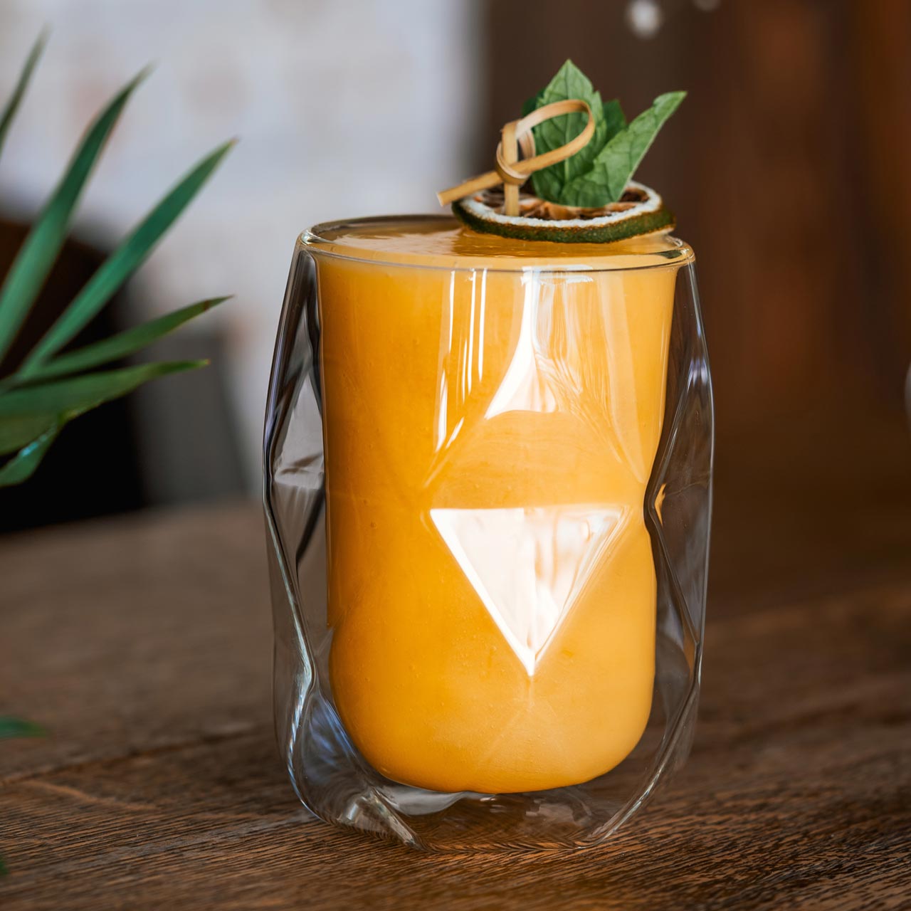 Szkło termiczne umożliwia utrzymanie wysokiej temperatury przez długi czas a dzięki podwójnej ściance zewnętrzna część szkła jest zawsze chłodna co zapobiega poparzeniu dłoni.