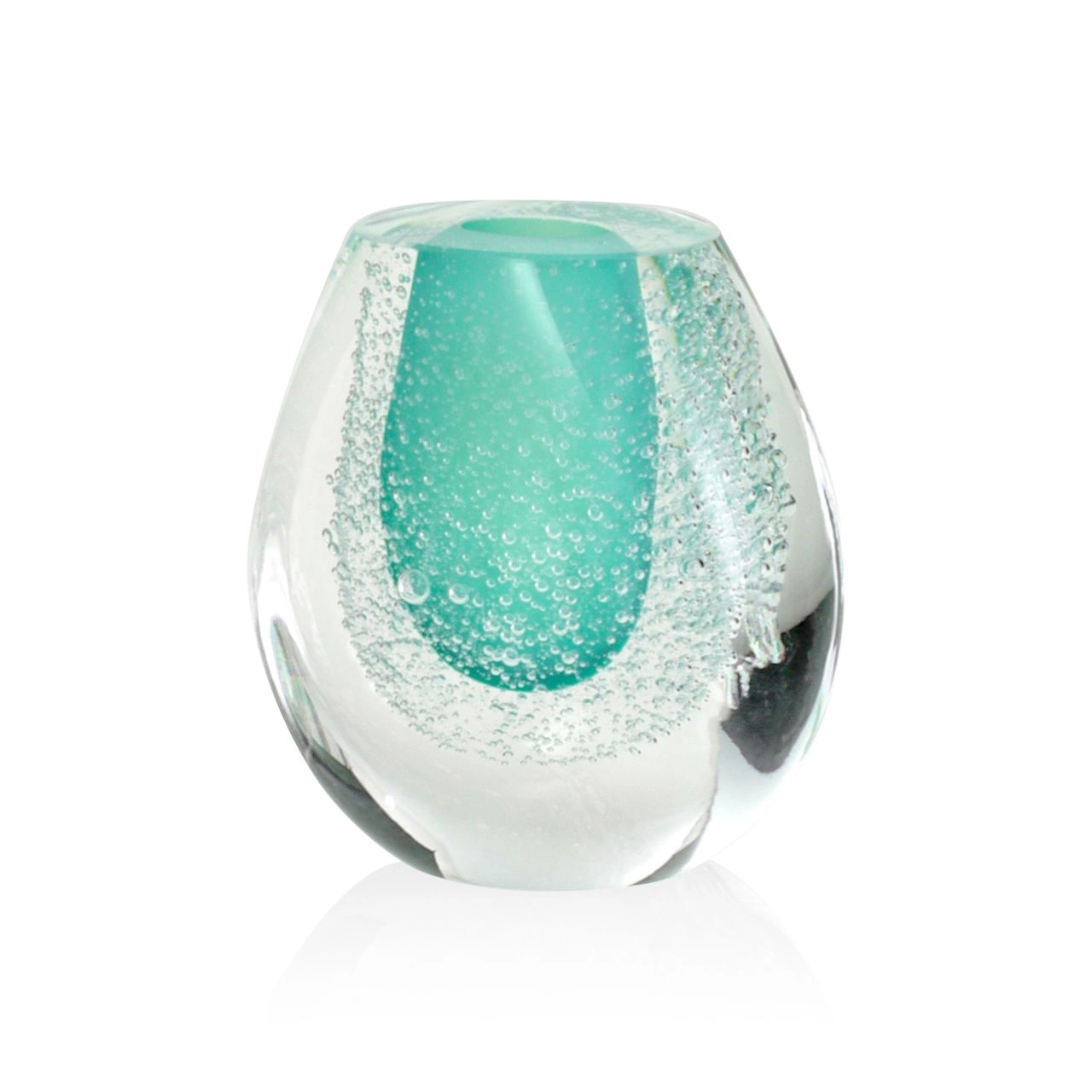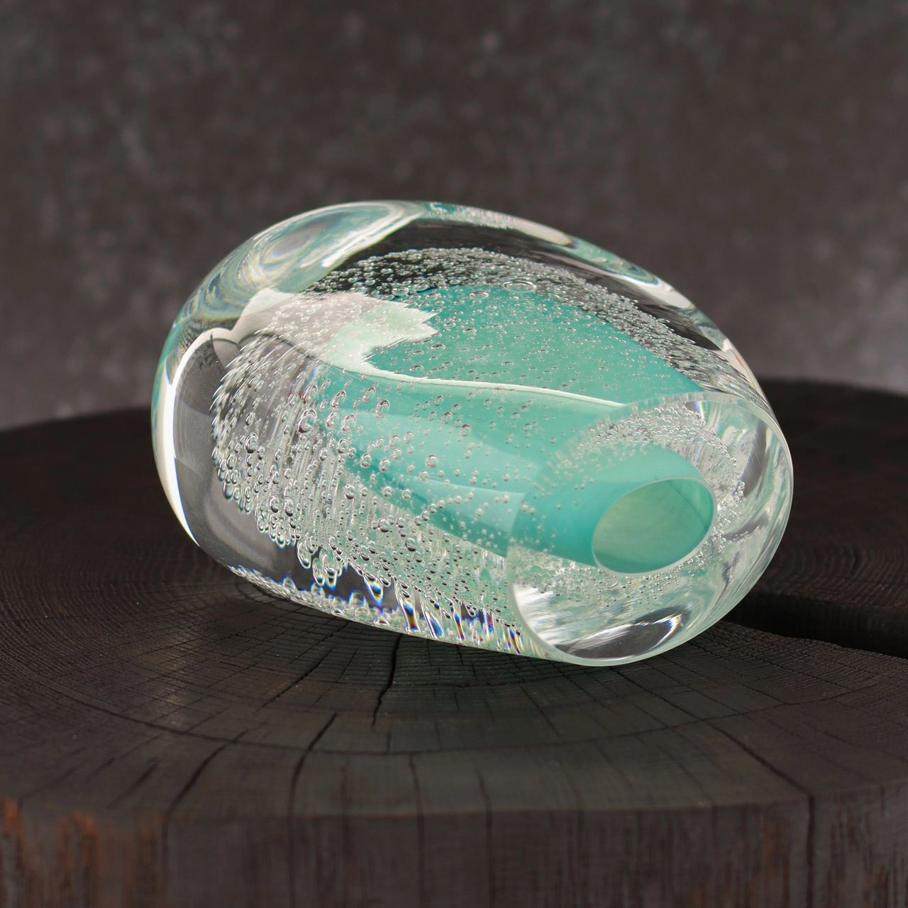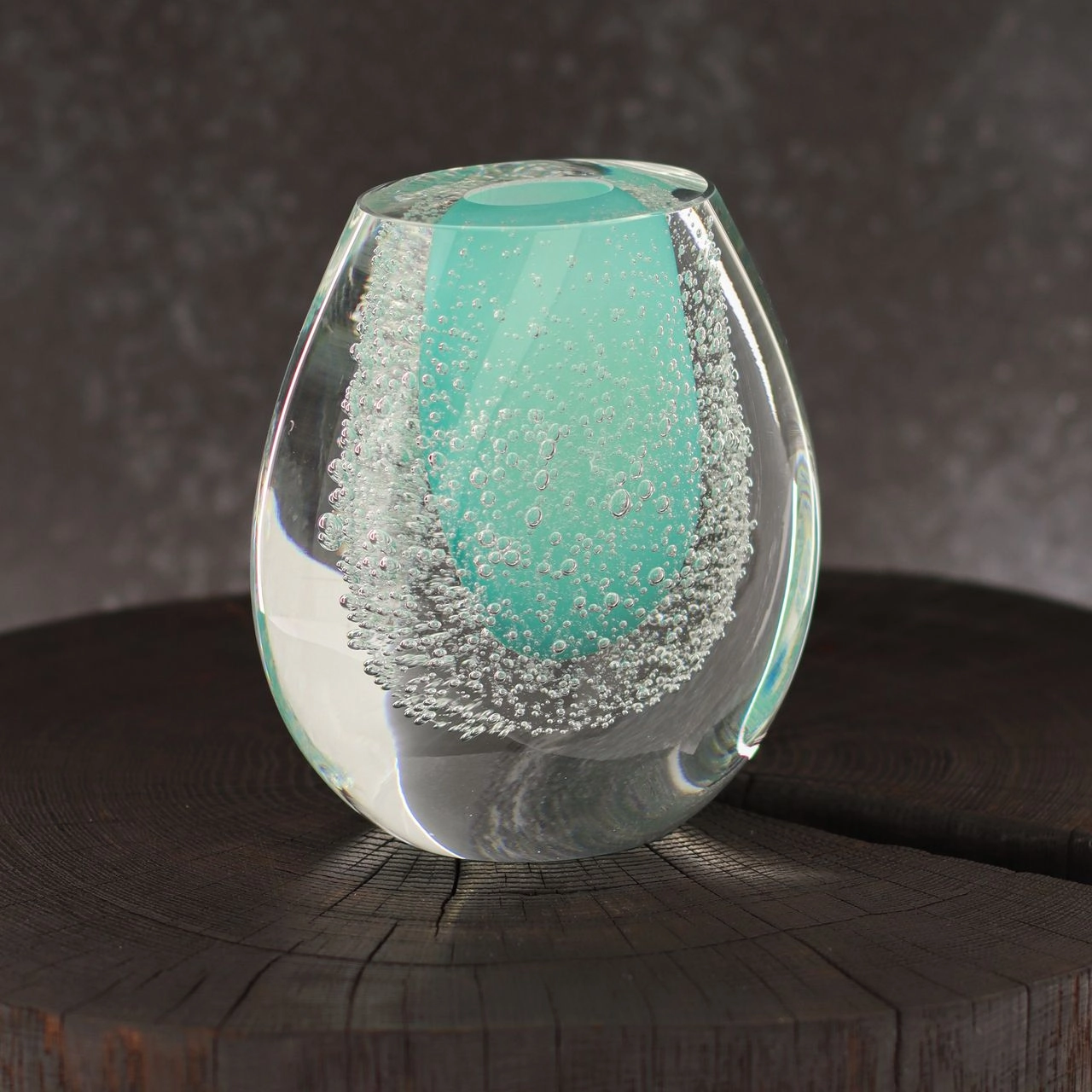 Szklany wazonik ozdobny 11,5cm - kolor turkusowy + soda | HUTA SABINA