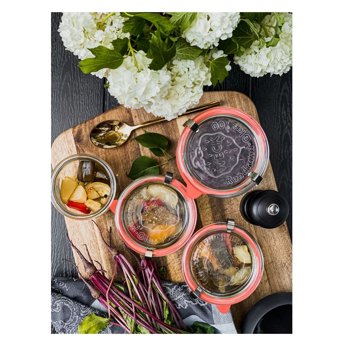 Wybierając produkty firmy WECK stosujesz produkty wielorazowego użytku - płacisz mniej i wspierasz oszczędne gospodarowanie zasobami naturalnymi naszej planety. Szkło marki Weck jest grube i trwałe, posiada doskonałe cechy fizyczne. Słoiki i butelki produkowane są ze szkła sodowo-wapniowego. Spinki WECK, służące w procesie konserwacji przetworów, są wykonane z najwyższej jakości, nierdzewnej stali INOX. Uszczelki WECK są wolne od fenoli i wykonane są z naturalnego kauczuku pozyskiwanego z kontrolowanych, legalnych plantacji.