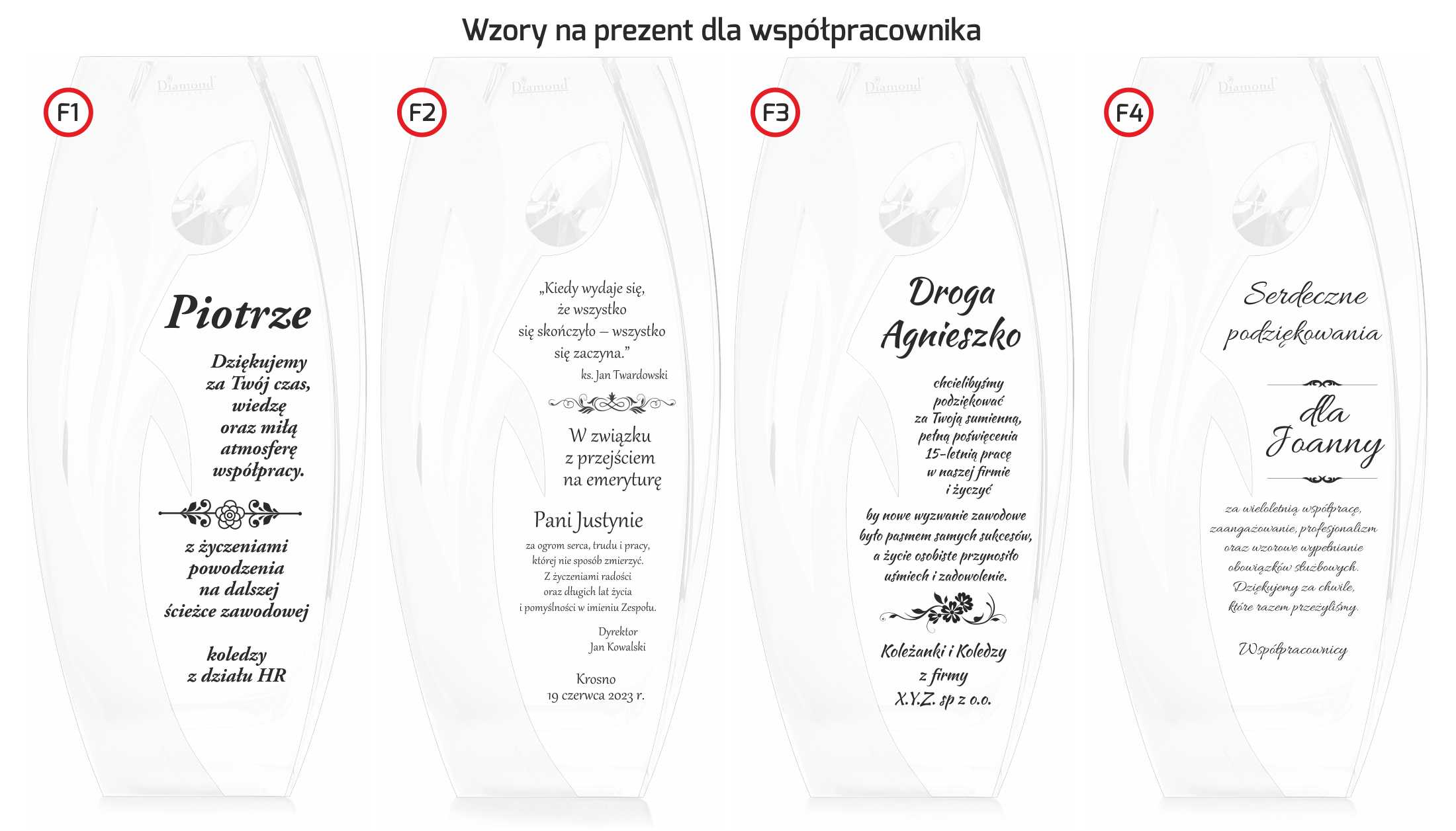 Teksty we wzorach są w całości edytowalne. Wskaż nr wybranego wzoru i całkowicie(lub częściowo) zmień treść tekstu podając swoje życzenia/dedykację.