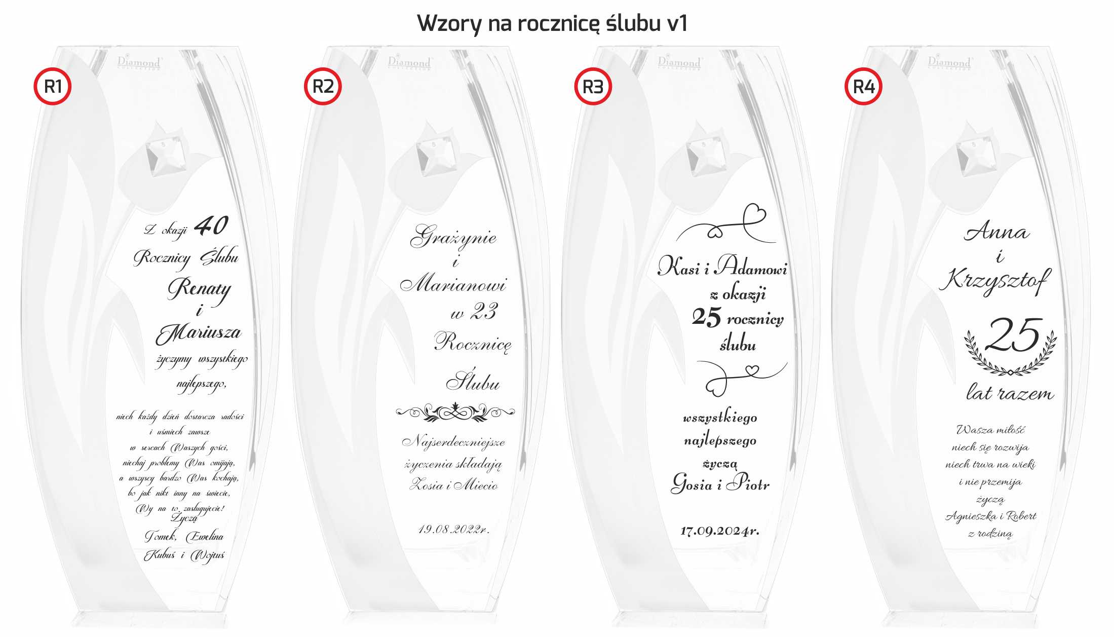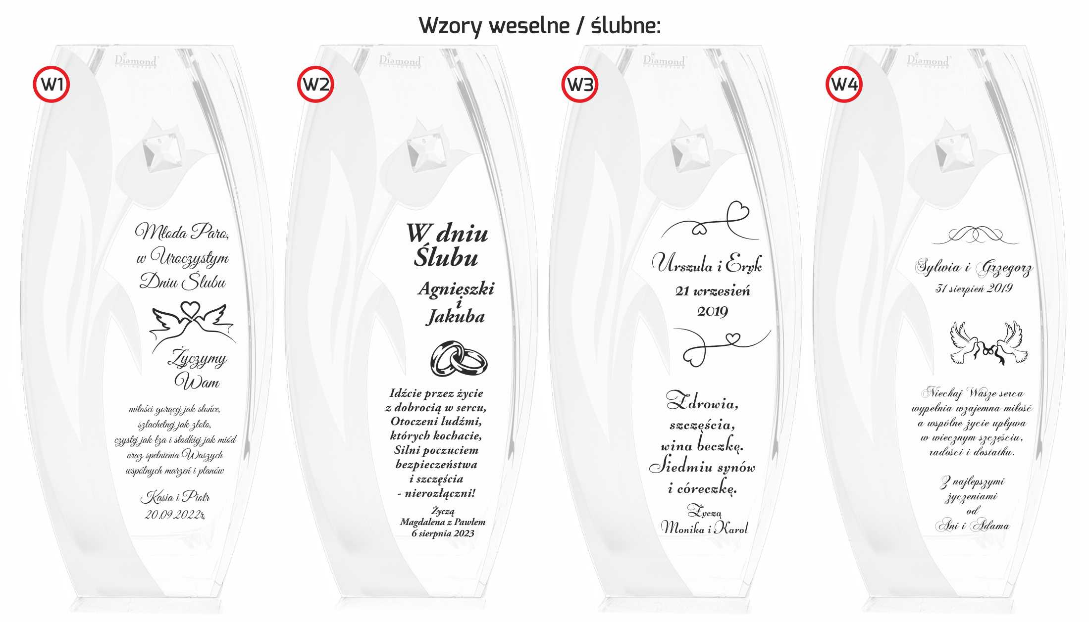 - treść graweru: na górze wazonu: Kasia i Andrzej, 30 lipca 2019, na dole wazonu: życzą Krystyna z Rafałem
