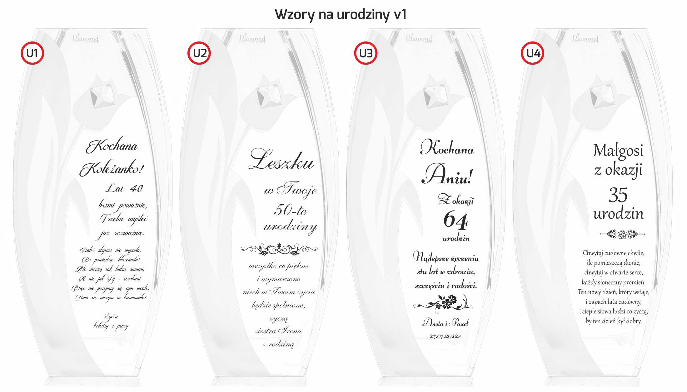 Teksty we wzorach są w całości edytowalne. Wskaż nr wybranego wzoru i całkowicie(lub częściowo) zmień treść tekstu podając swoje życzenia/dedykację.