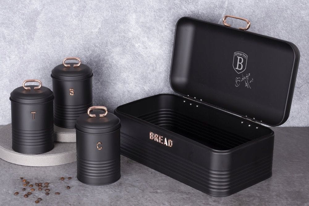 Chlebak oraz 3 pojemniki na żywność ze stali nierdzewnej Berlinger Haus Black Rose BH-6753