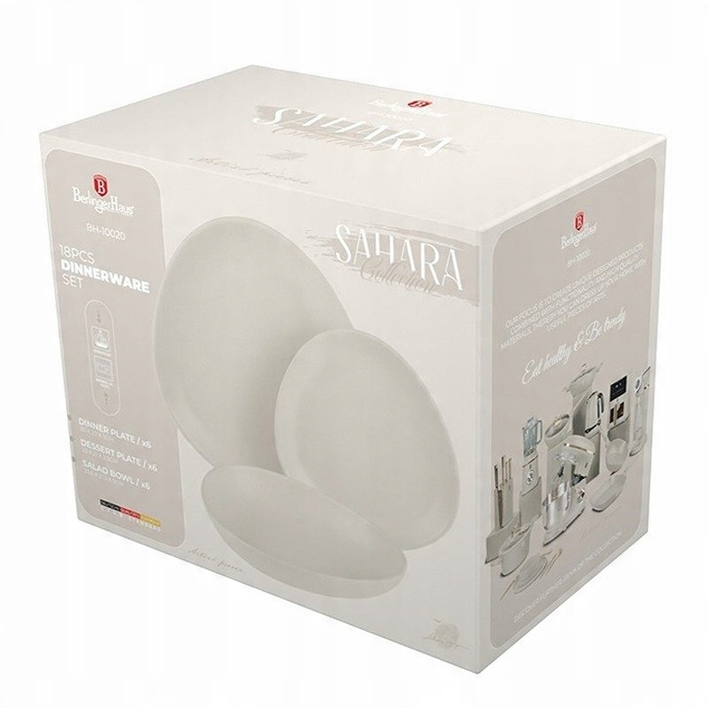 Zestaw obiadowy Berlinger Haus z serii Sahara to połączenie stylu, trwałości i funkcjonalności. Wykonany z wysokiej jakości porcelany, zachwyca zarówno estetyką, jak i praktycznością, idealnie pasując do nowoczesnych i klasycznych wnętrz. Dzięki swojej eleganckiej linii i wytrzymałości, stanie się niezastąpionym elementem Twojego stołu na każdą okazję.